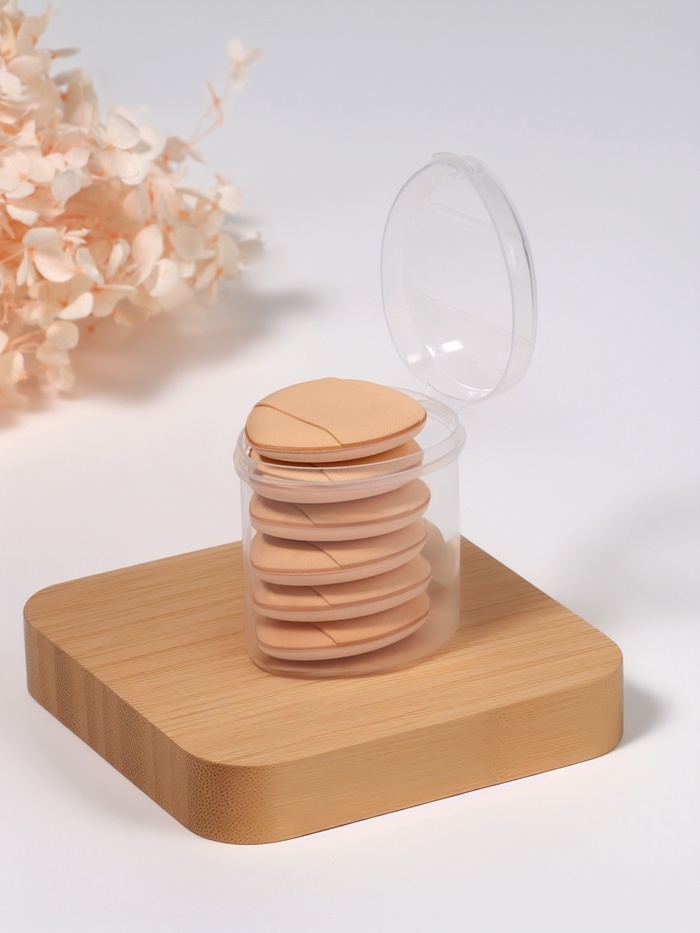 Набор спонжей д/макияжа с держат (наб 6шт цена за наб) 3,9*3,1*0,5см пласт футляр QF