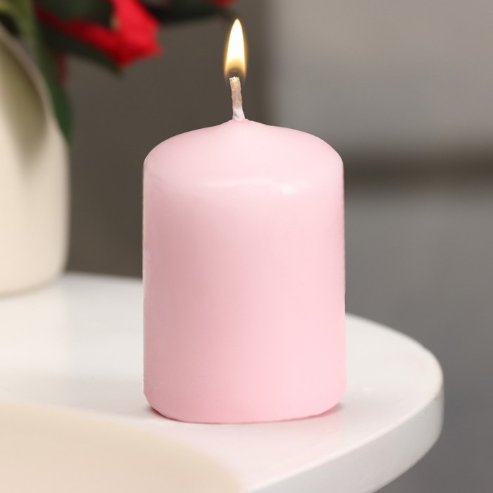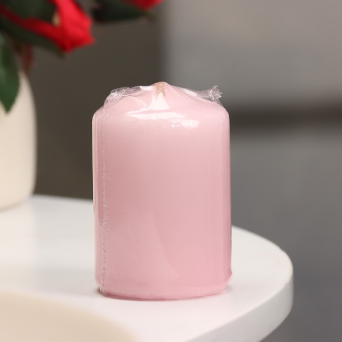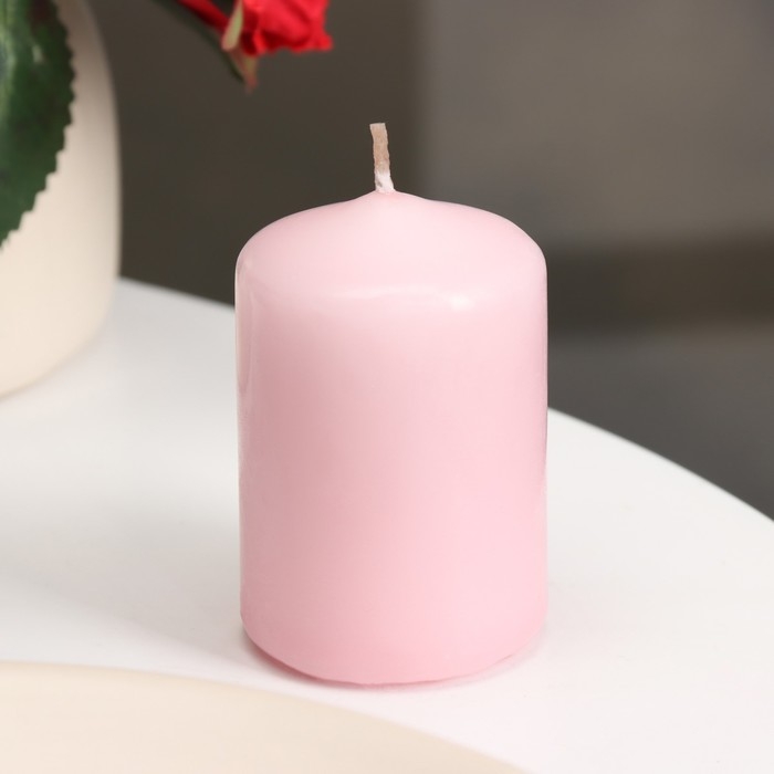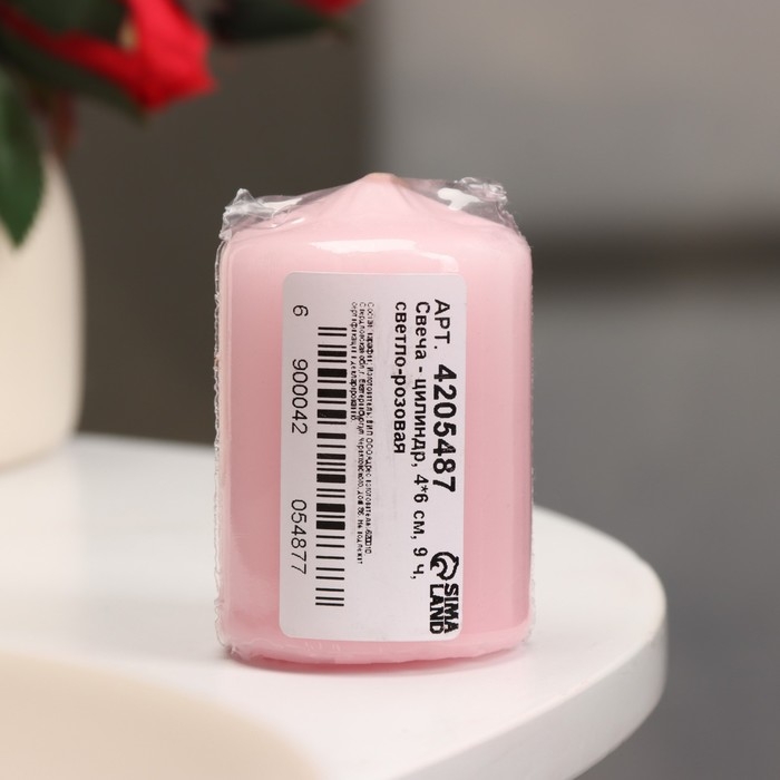 Свеча - цилиндр, 4×6 см, 9 ч, светло-розовая
