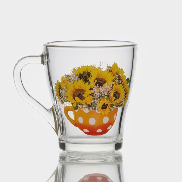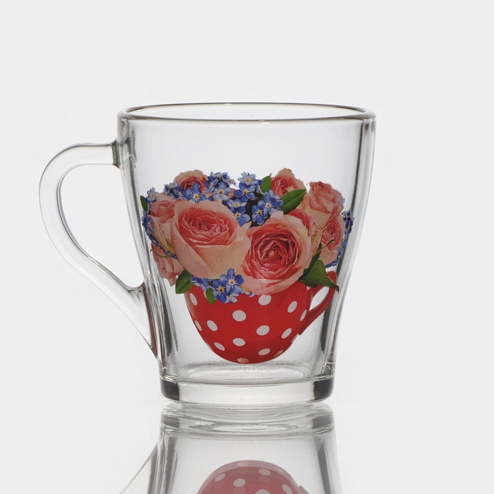 Кружка стеклянная «Цветочная чаша», 250 мл, рисунок МИКС