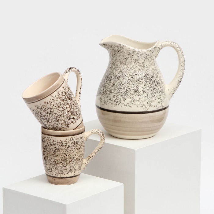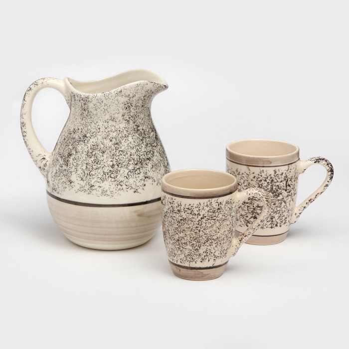 Набор посуды "Персия", керамика, серый, 3 предмета: кувшин 1.5 л, кружки 350 мл, 1 сорт, Иран