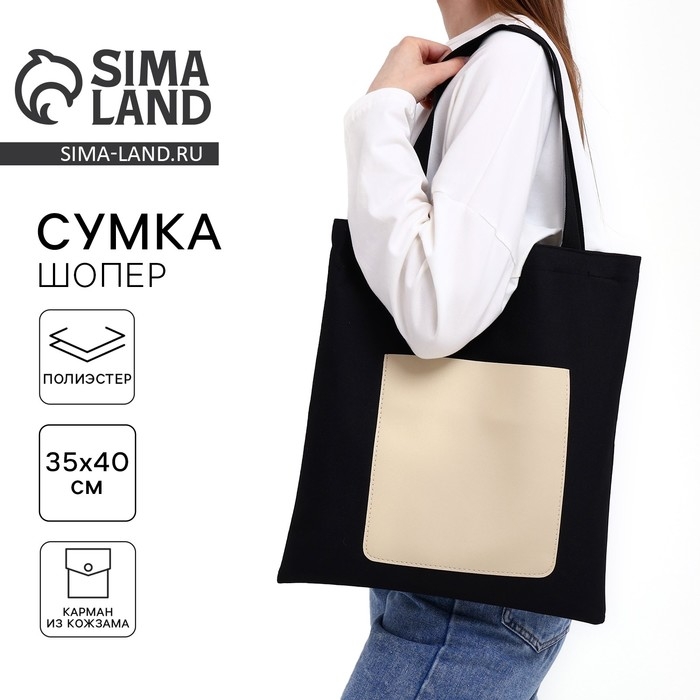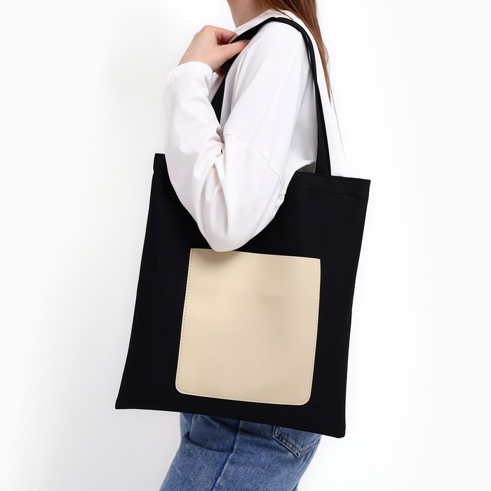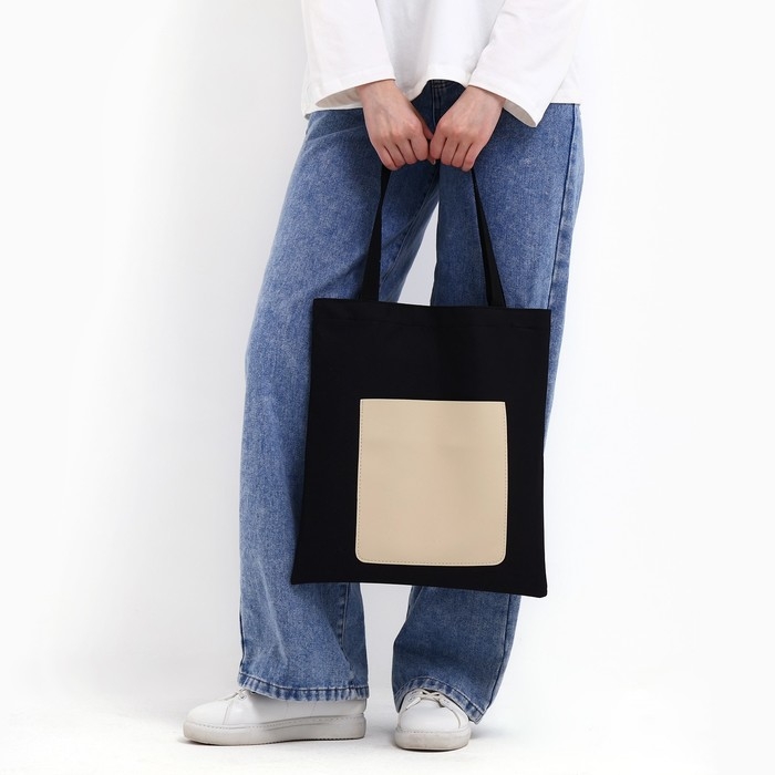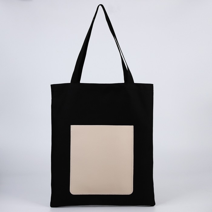 Шопер NAZAMOK, карман кожзам, цвет чёрный, бежевый, 40х35 см