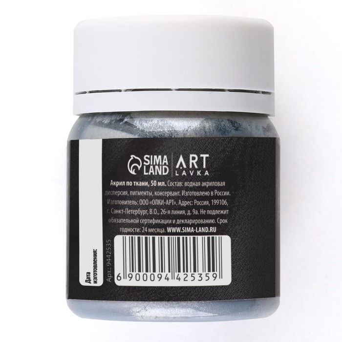Акриловая краска по ткани ARTLAVKA, серебро 50 мл