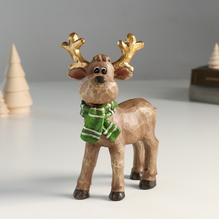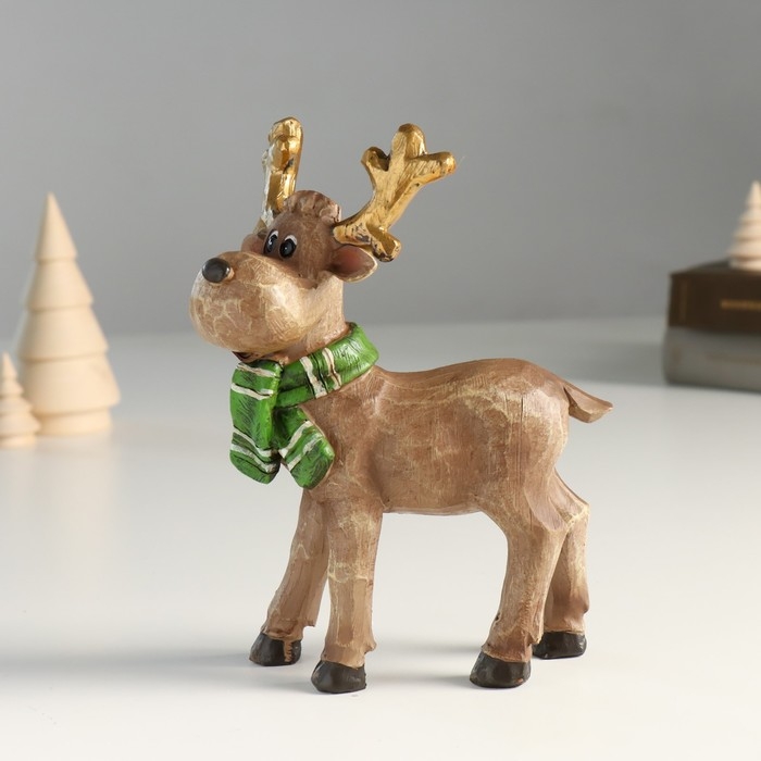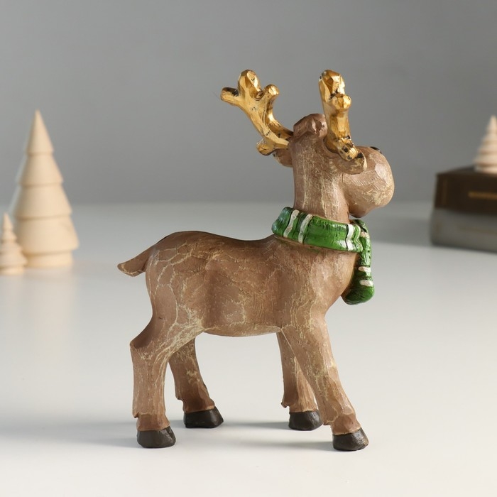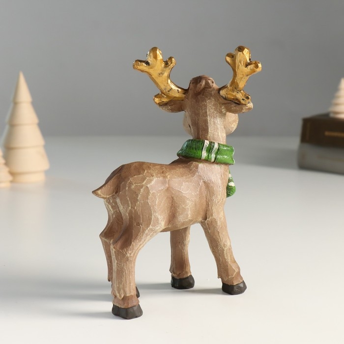 Сувенир полистоун "Оленёнок в зелёном шарфике с золотыми рожками" 7,3х12х18 см