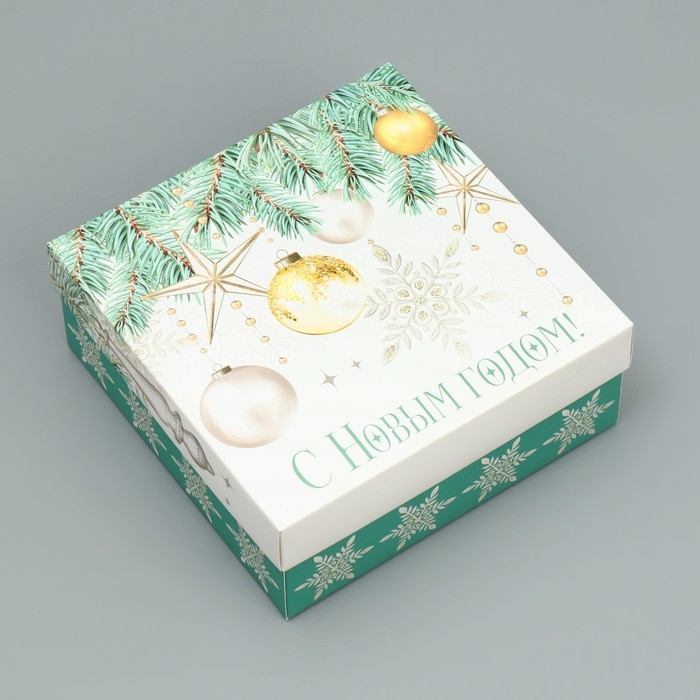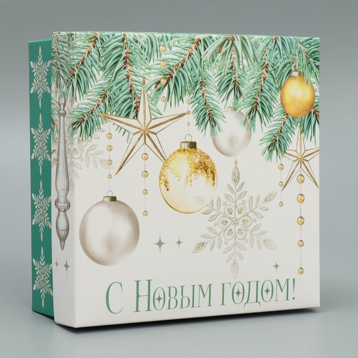 Коробка новогодняя складная «С Новым годом!», 17 х 17 х 7 см