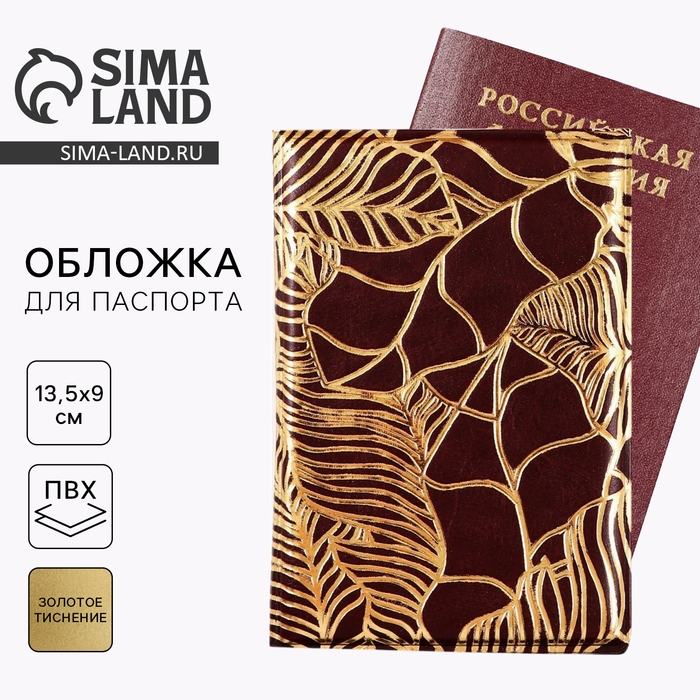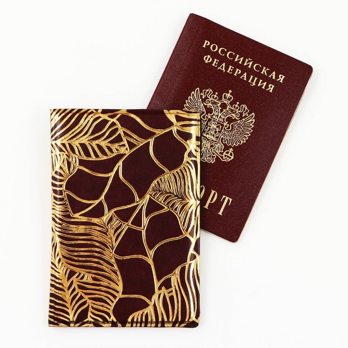 Обложка на паспорт «Текстурные листья», искусственная кожа