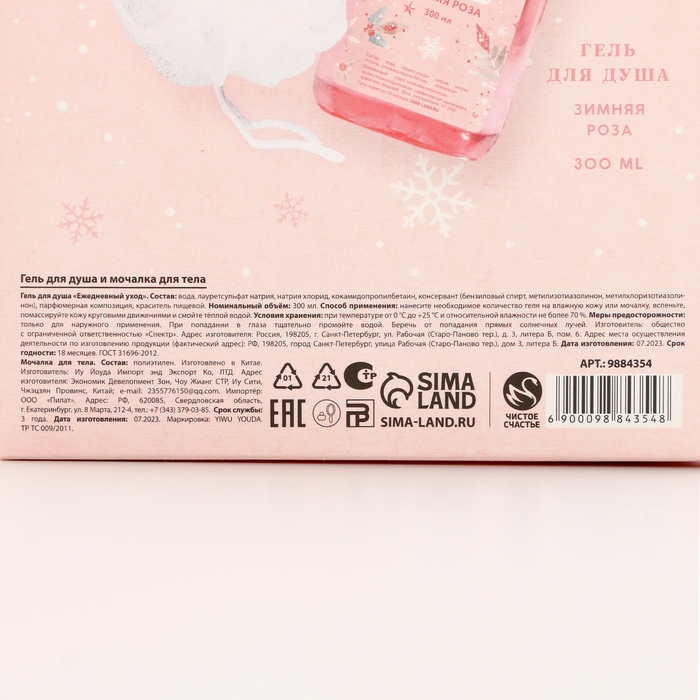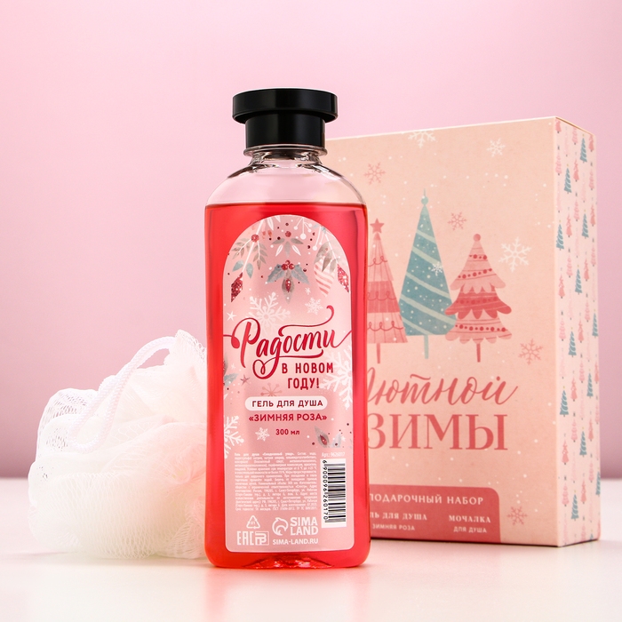Подарочный набор ЧИСТОЕ СЧАСТЬЕ «Уютной зимы»: гель для душа 300 мл и мочалка для тела, Новый Год