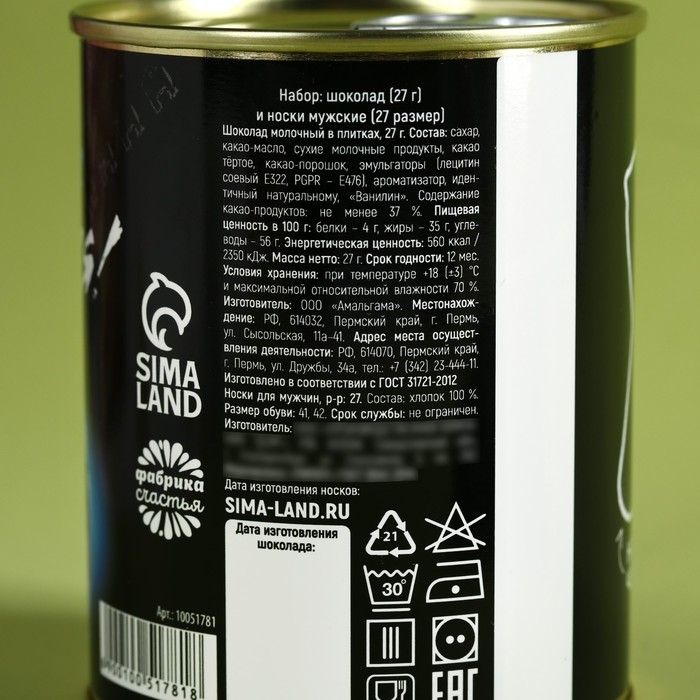 Подарочный набор «Никогда не сдавайся», носки мужские 27 размер, молочный шоколад 27 г.