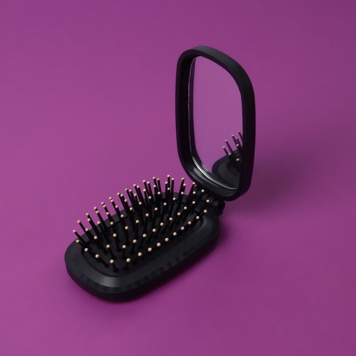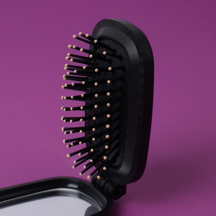 Расчёска массажная, складная, зеркалом, 9,5 × 5,5 см, цвет чёрный
