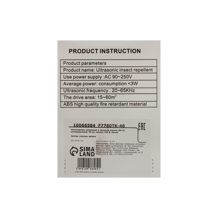 Отпугиватель насекомых и грызунов LRI-51, ультразвуковой, 30 м2, ночник, 220 В, белый