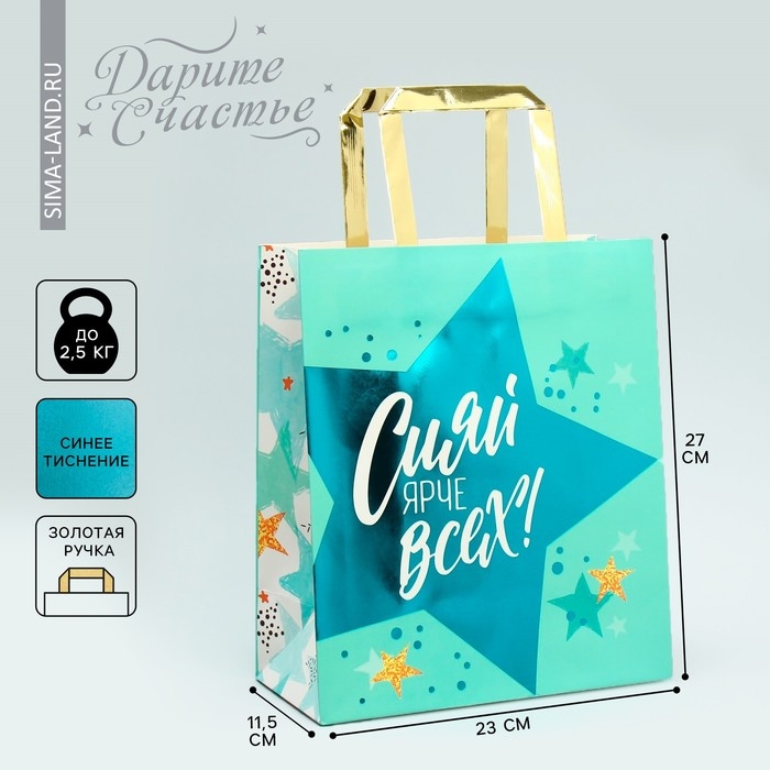 Упаковка, пакет подарочный, «Сияй», ML 23 х 27 х 11.5 см