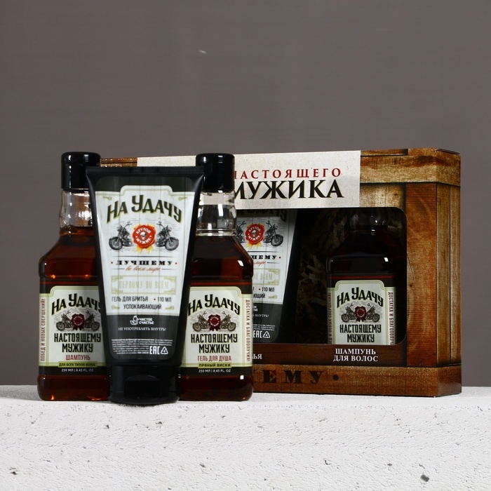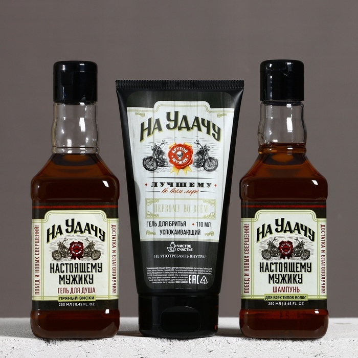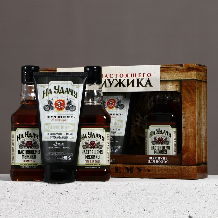 Подарочный набор ЧИСТОЕ СЧАСТЬЕ «На удачу»: гель для бритья 110 мл, гель для душа и шампунь для волос виски, 2х250 мл