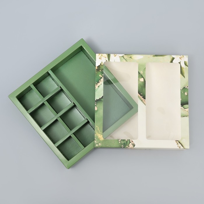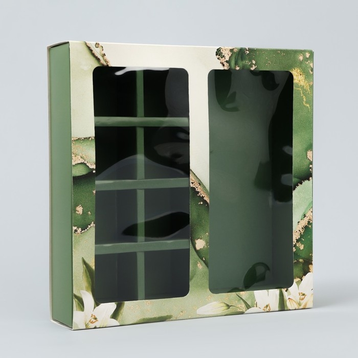 Коробка под 8 конфет и шоколад с ячейками, кондитерская упаковка «Любимому учителю» 18 х 18 х 4 см
