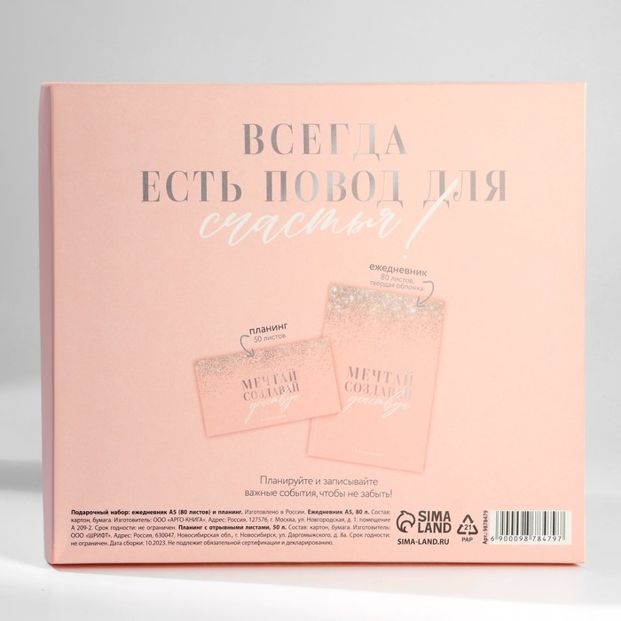 Подарочный набор ежедневник А5, 80 листов и планинг, 50 л. «Мечтай, создавай, действуй»