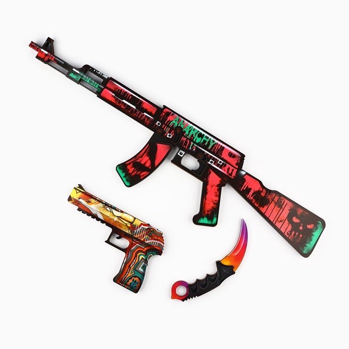 Деревянное оружие, детское сувенирное «Яркий», автомат, пистолет, керамбит, набор 3 шт