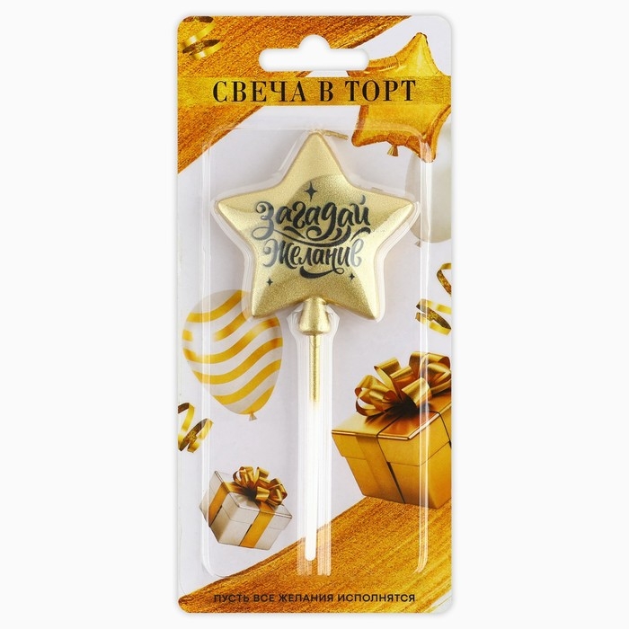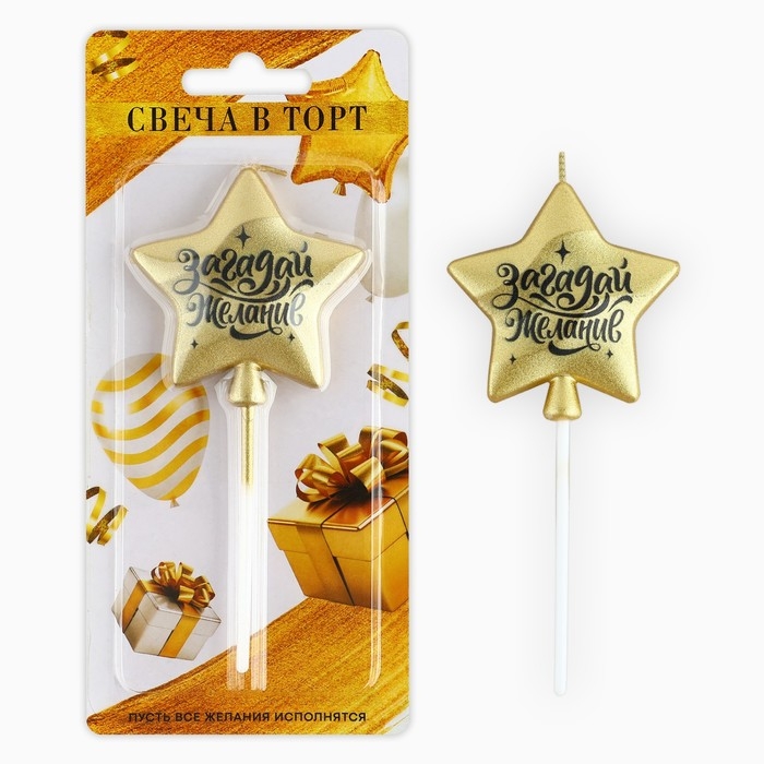 Свеча для торта «Загадай желание», золотая, 5,5 х 12 см