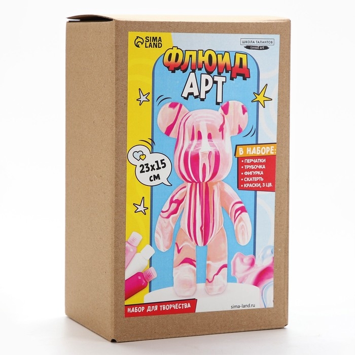 Рисование акрилом на пластиковой фигурке «Мишка», розовый, набор для творчества Флюид-арт