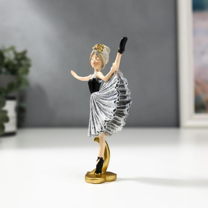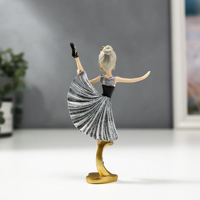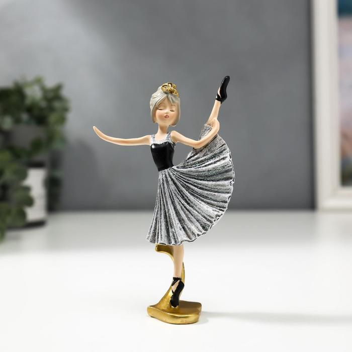 Сувенир полистоун "Девочка-балерина в серо-чёрном платье и чёрных пуантах" 13х3х8 см