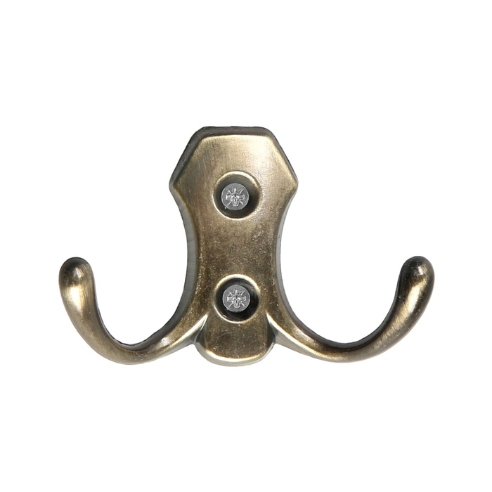 Крючок мебельный ТУНДРА TKD007, двухрожковый, бронза, 4 шт TMP