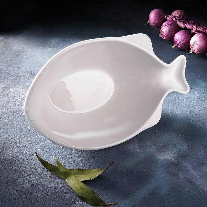 Салатник фарфоровый Magistro «Рыбка», 2 л, 31×17×10,5 см, цвет белый