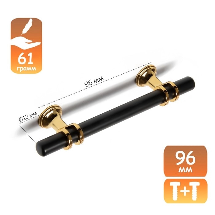 Ручка-рейлинг CAPPIO RSC003, м/о 96 мм, d=12 мм, цвет черный с золотом, 4 шт.