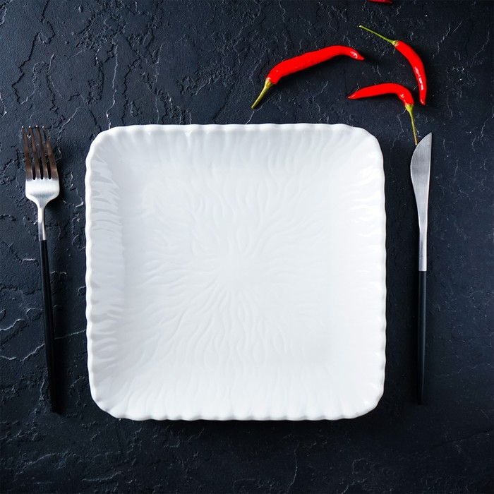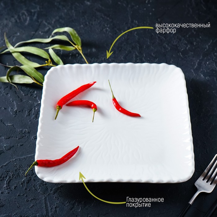 Тарелка фарфоровая пирожковая Magistro «Цветок Бланш», 22,5×22,5 см, цвет белый