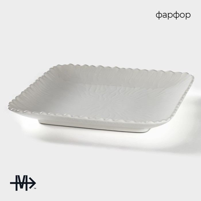 Тарелка фарфоровая квадратная Magistro «Цветок Бланш», 30×30 см, цвет белый