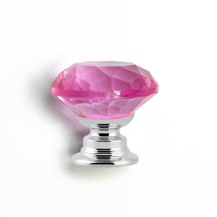 Ручка-кнопка CAPPIO "Алмаз", цвет розовый, стеклянная, d=30 мм, 8 шт.