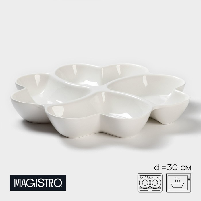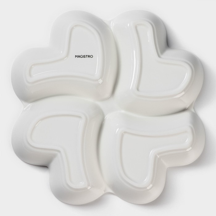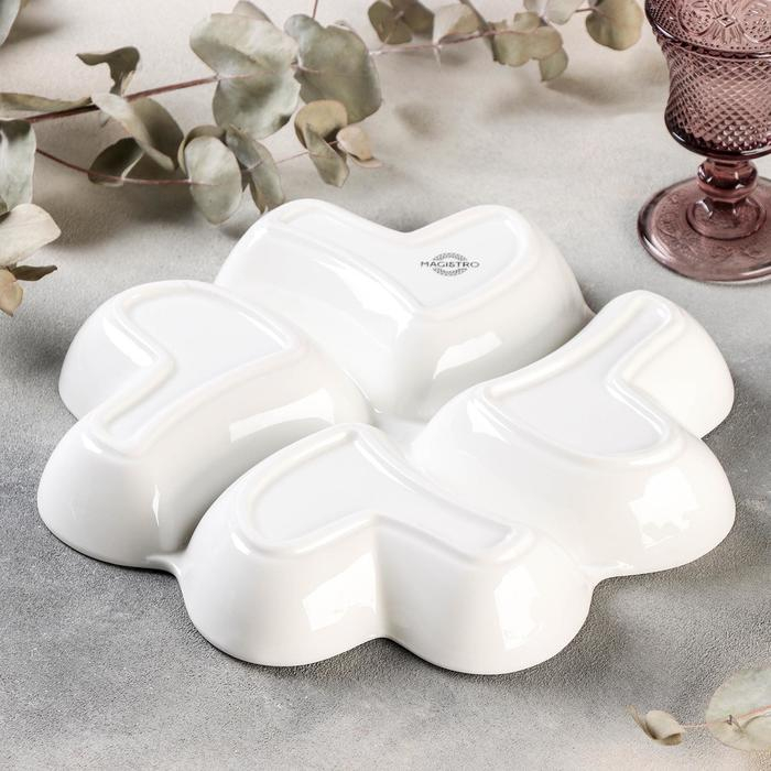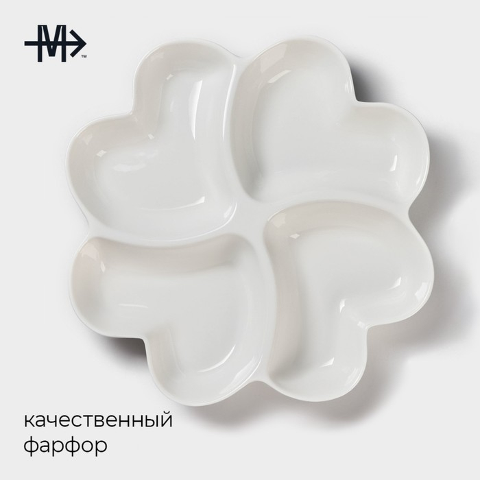 Менажница фарфоровая 4-х секционная Magistro «Сердца Бланш», d=30 см, цвет белый
