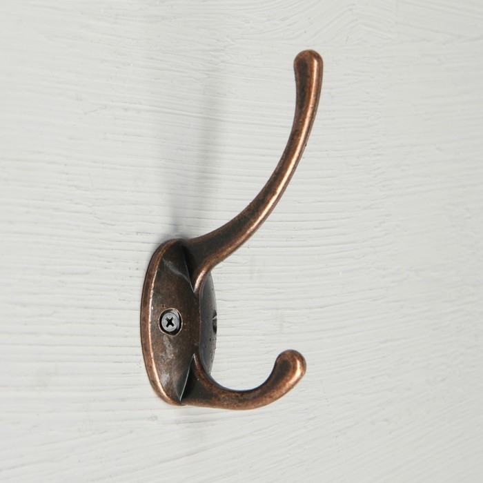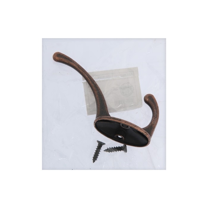 Крючок мебельный ТУНДРА TKD008, двухрожковый, медь, 4 шт TMP
