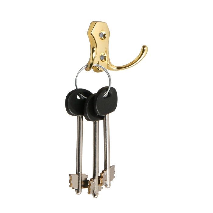 Крючок мебельный ТУНДРА TKD007, двухрожковый, золото, 4 шт TMP