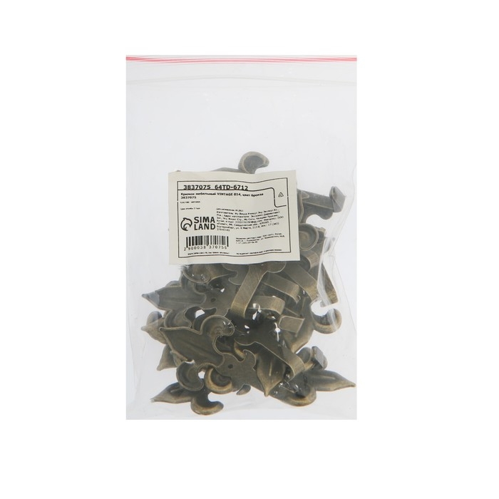 Крючок мебельный ТУНДРА TKO013, однорожковый, бронза, 10 шт TMP