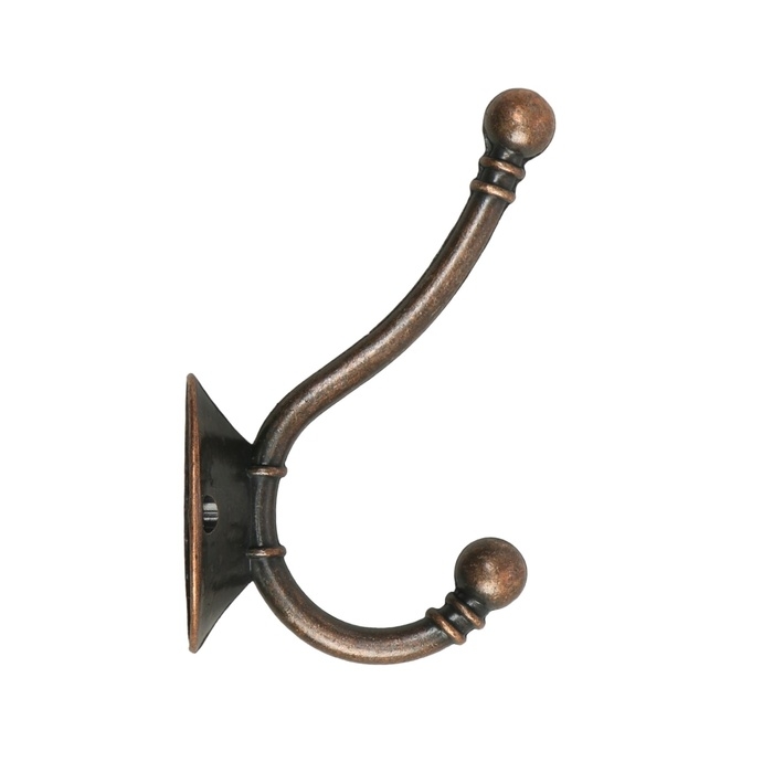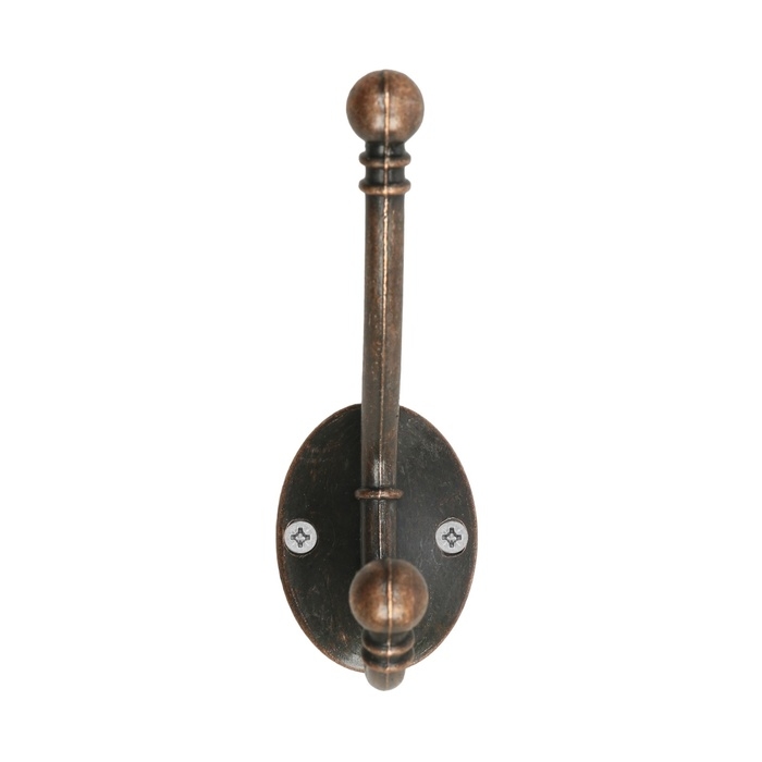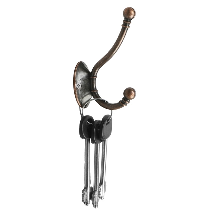 Крючок мебельный ТУНДРА TKD021, двухрожковый, медь, 5 шт TMP