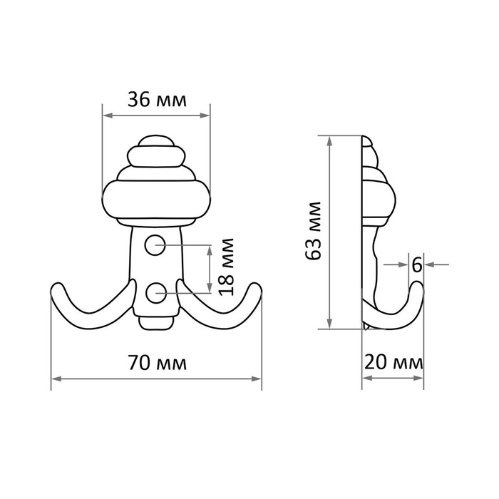Крючок мебельный ТУНДРА TKD028, двухрожковый, хром, 8 шт TMP