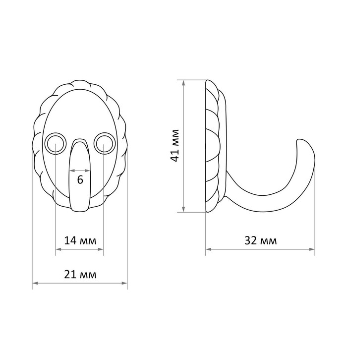 Крючок мебельный ТУНДРА TKO018, однорожковый, хром, 8 шт TMP