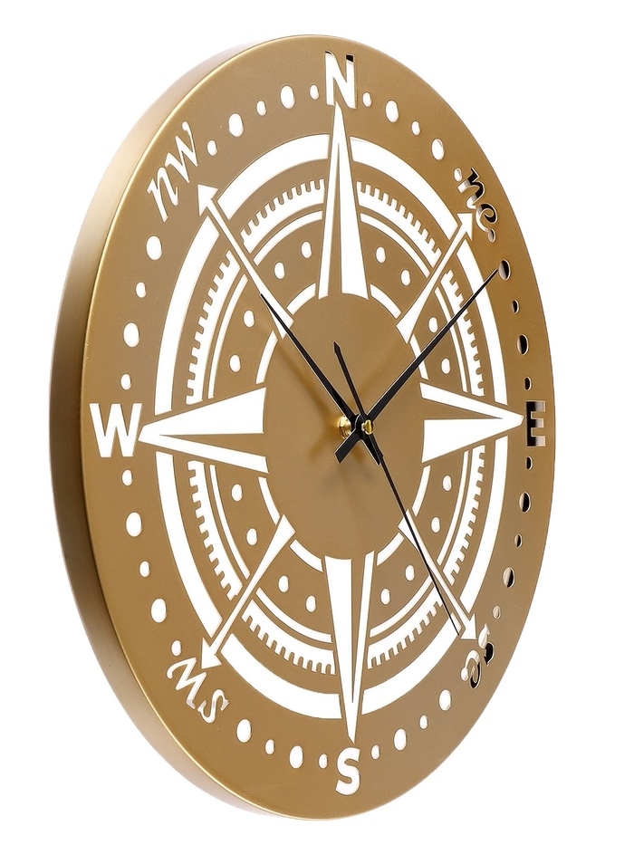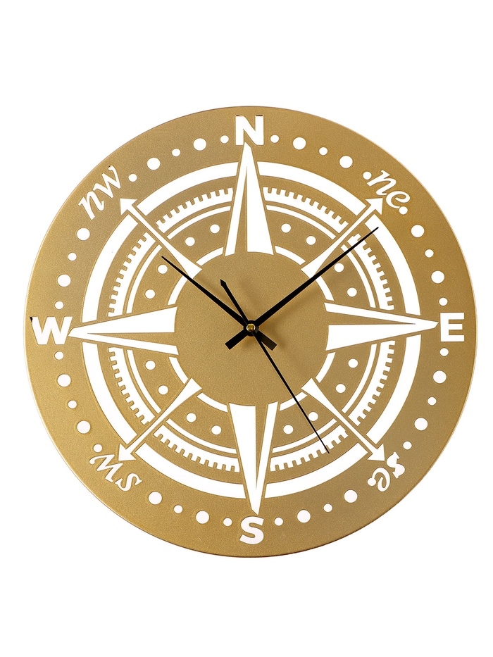 Часы настенные интерьерные «Компас», плавный ход, d-40 см, золотистые