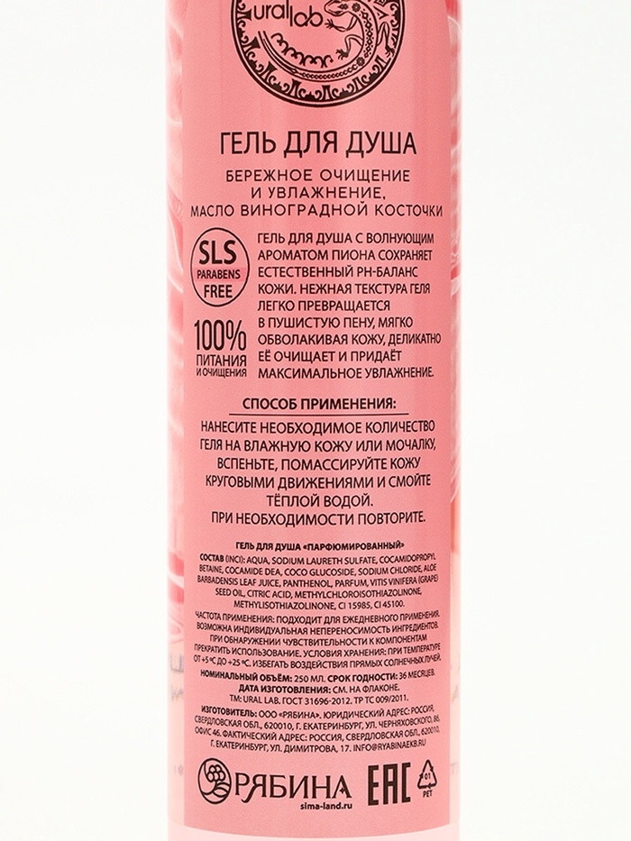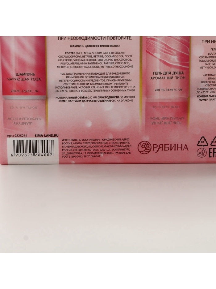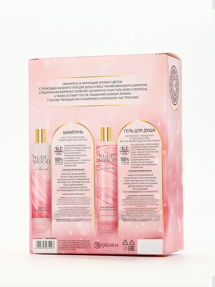 Подарочный набор URAL LAB: гель для душа и шампунь для волос, 2х250 мл, аромат розы и пиона