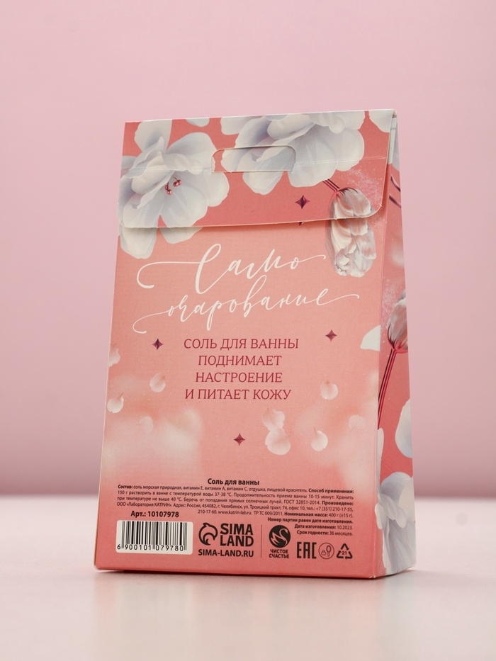 Соль для ванны "С 8 марта!", 400 г, аромат малиновый маршмеллоу