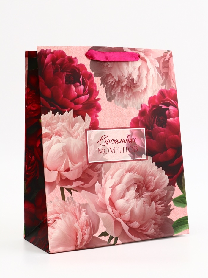 Пакет подарочный вертикальный "Счастливых моментов", 26 × 32 × 12 см