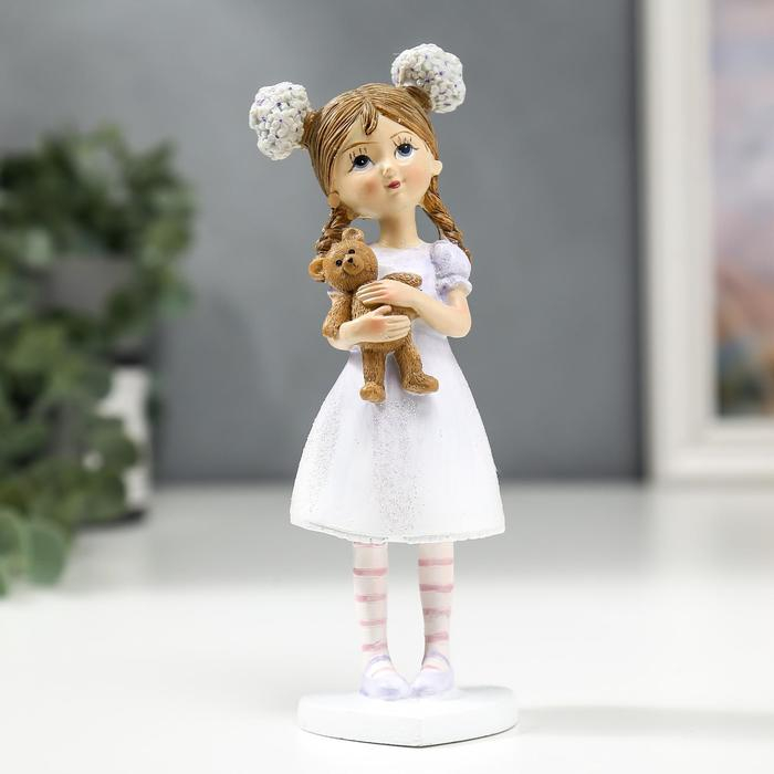 Сувенир полистоун "Малышка с цветами в волосах, с мишкой" 16х4,5х5,5 см