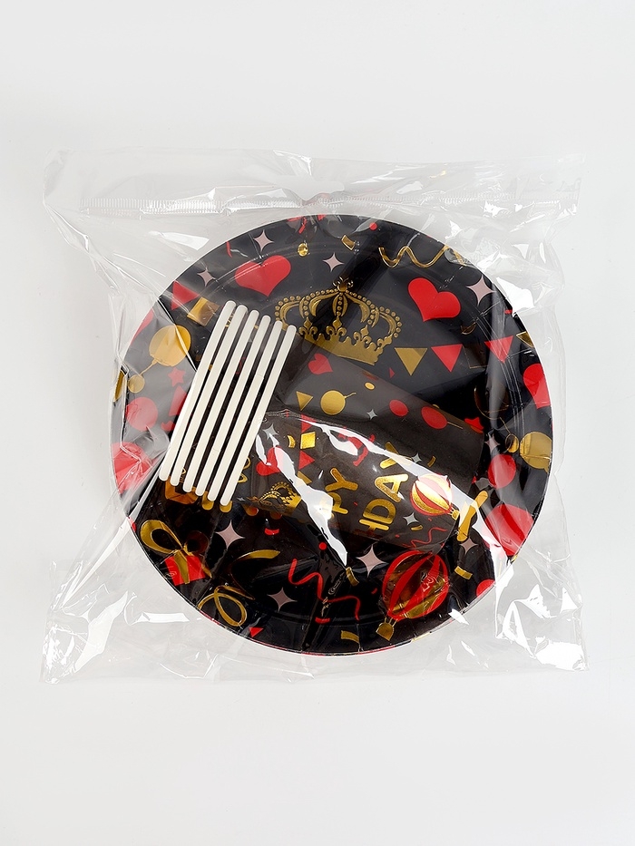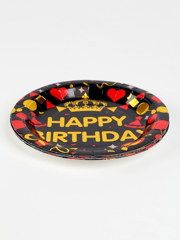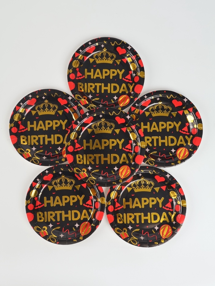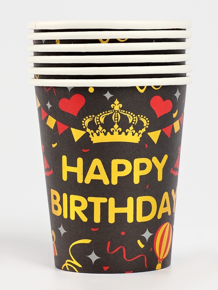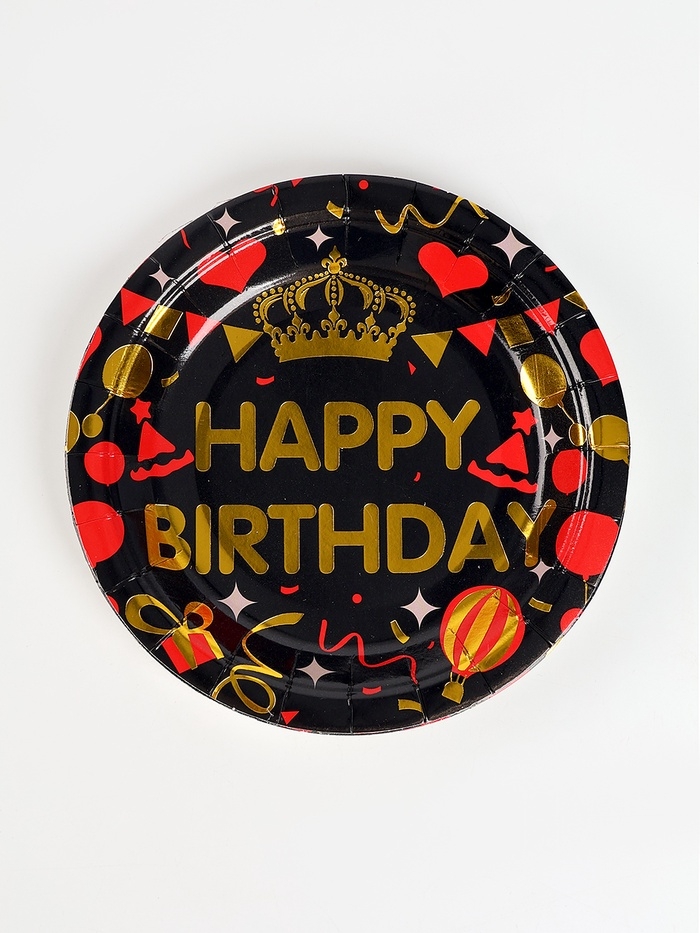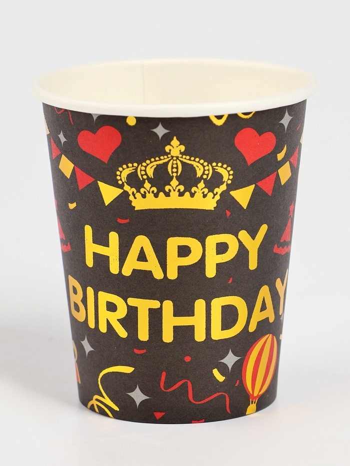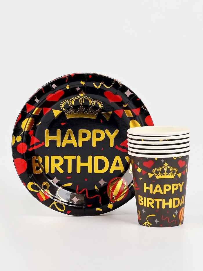 Набор бумажной посуды "С днём рождения", набор 12 шт., цвет чёрный