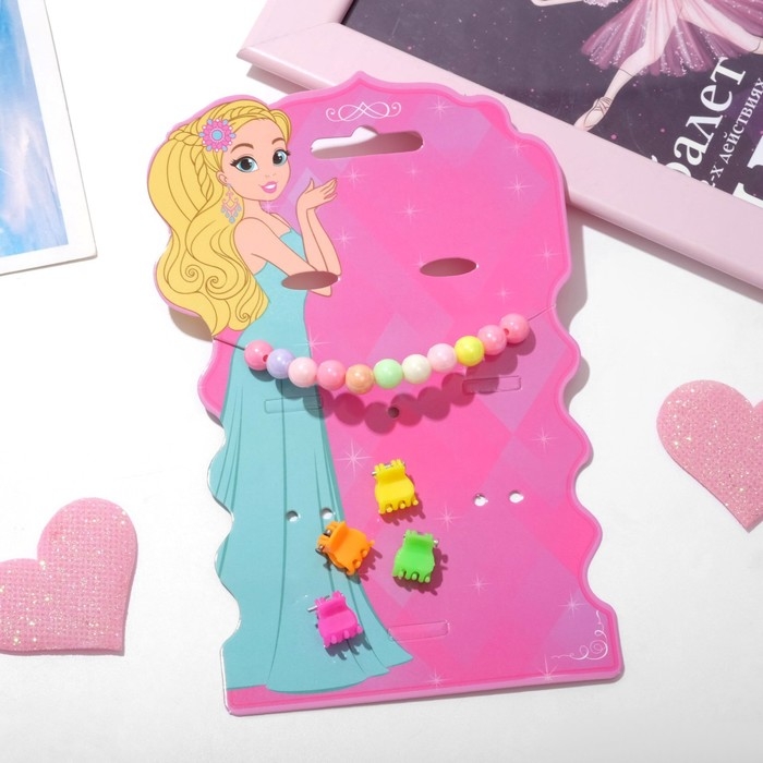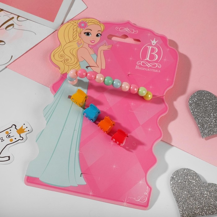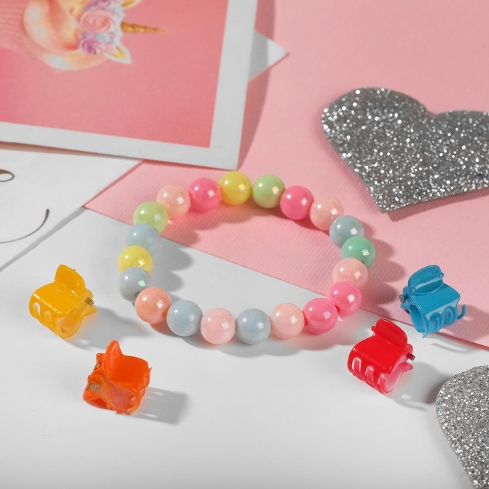 Комплект детский «Выбражулька» 4 предмета: заколка, 3 браслета, сердце, цветной