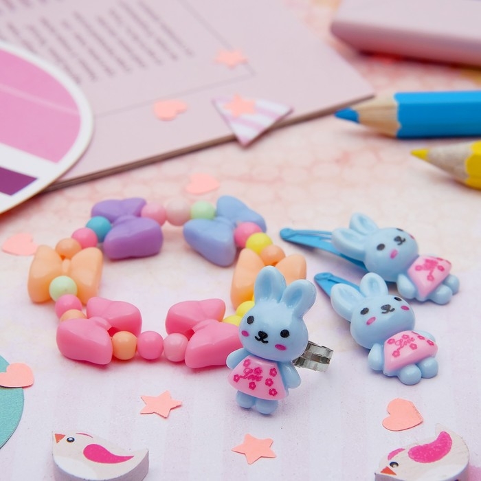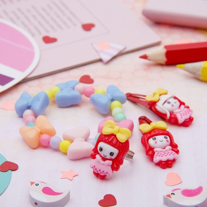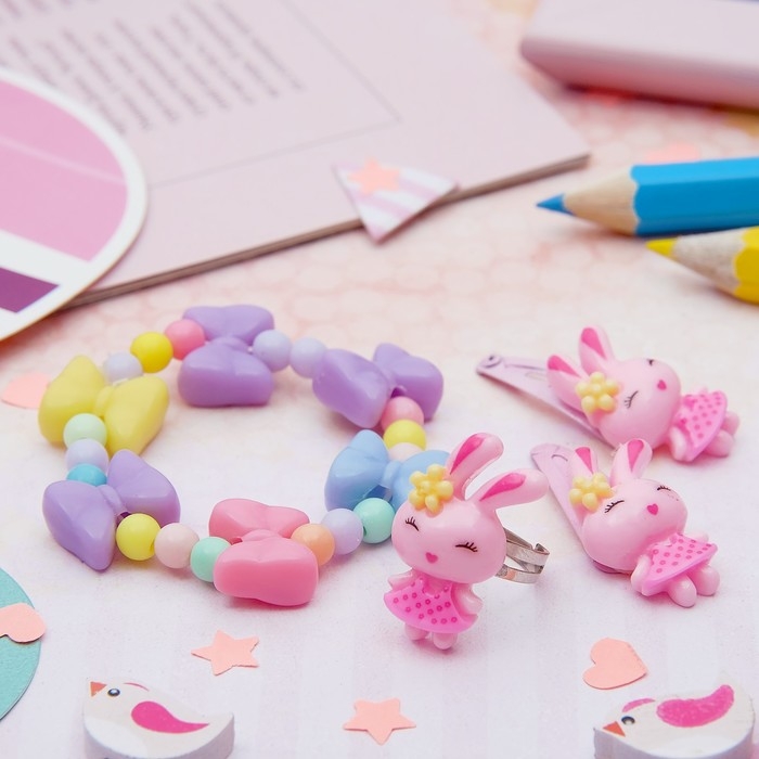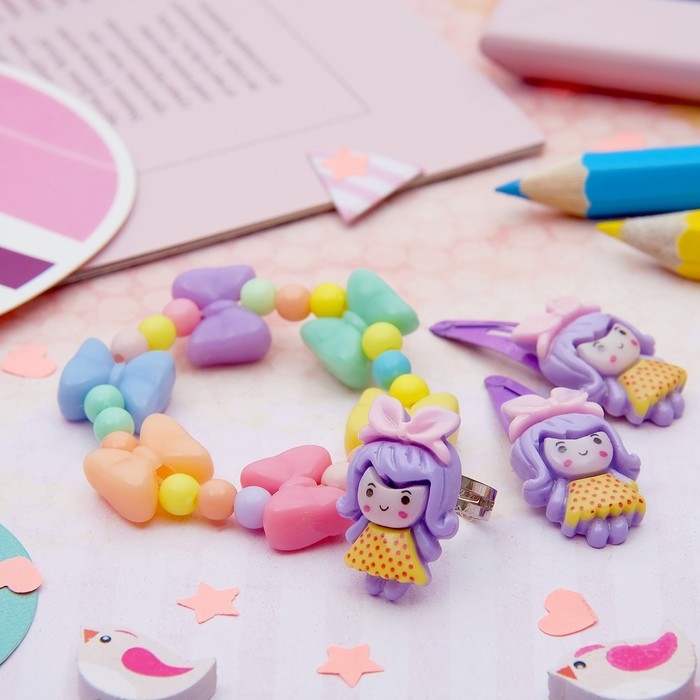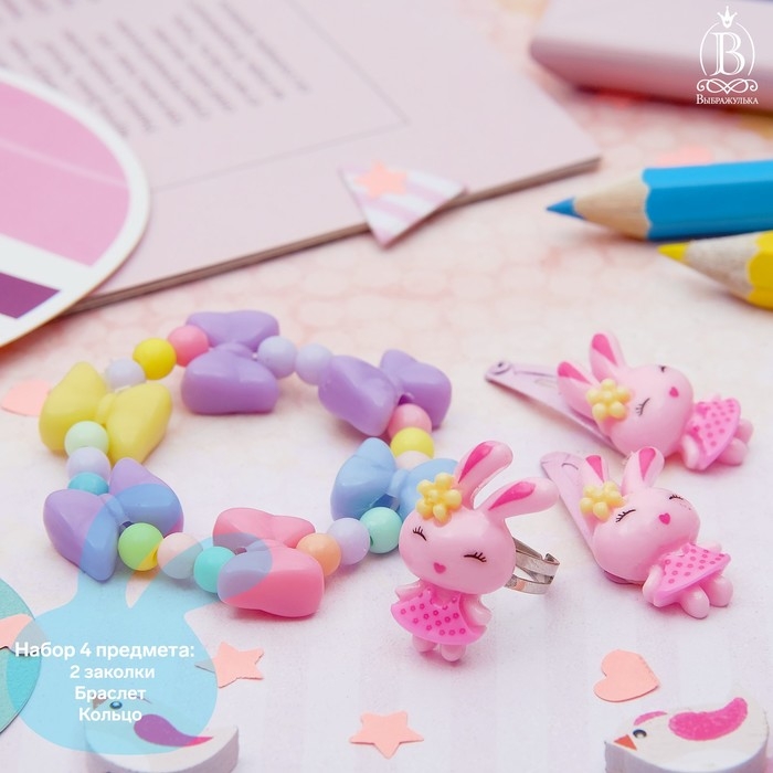 Набор детский «Выбражулька» 4 предмета: 2 заколки, браслет, кольцо «Бантики», цвет МИКС, форма МИКС