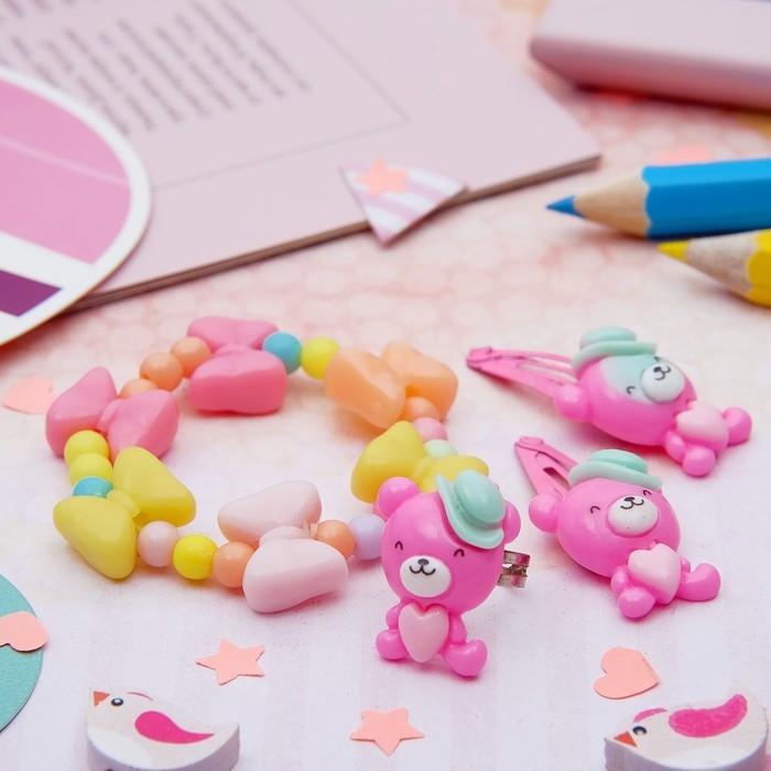 Комплект детский «Выбражулька» 4 предмета: заколка, 3 браслета, сердце, цветной
