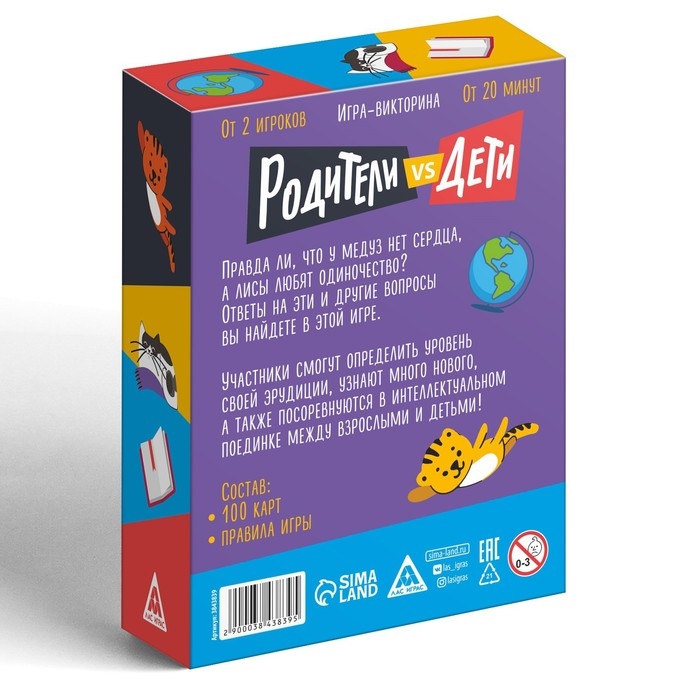 Настольная игра-викторина «Дети VS родителей», 100 карт, 7+