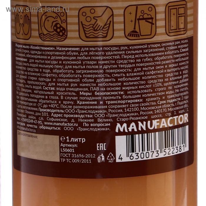 Жидкое мыло "Хозяйственное" универсальное MANUFACTOR, 1л