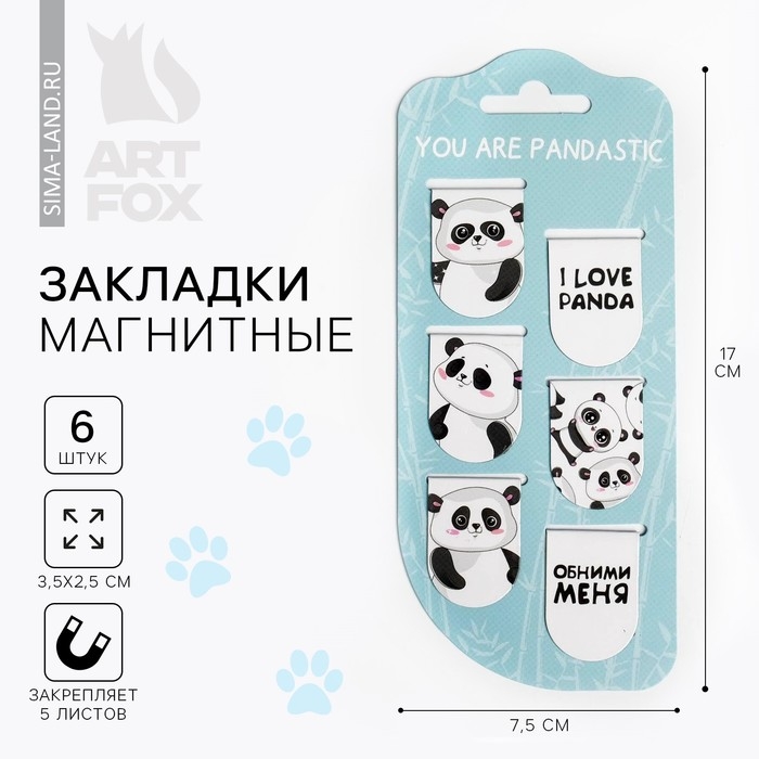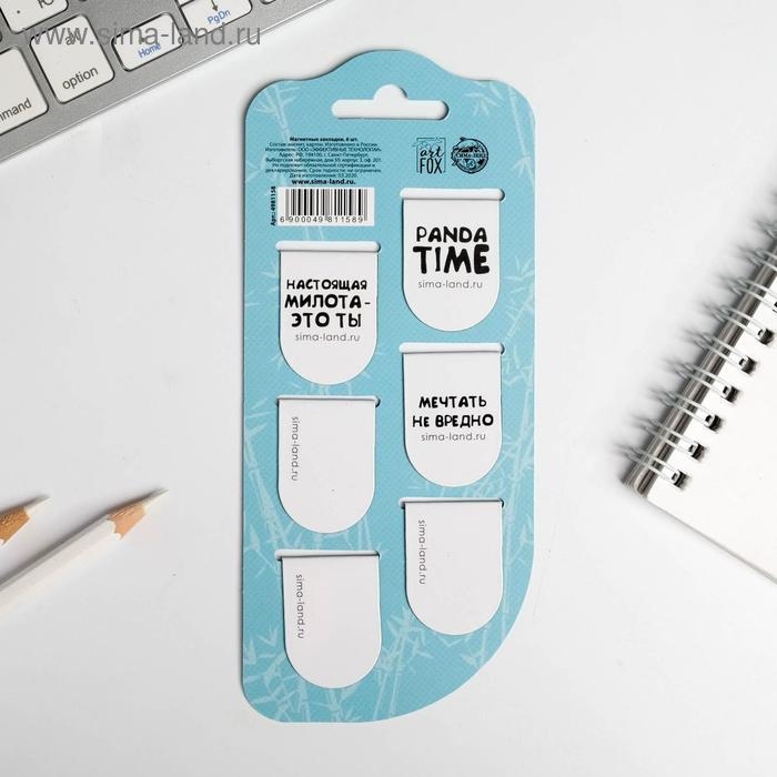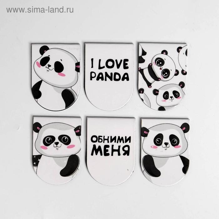 Закладки магнитные для книг, 6 шт «Панда»