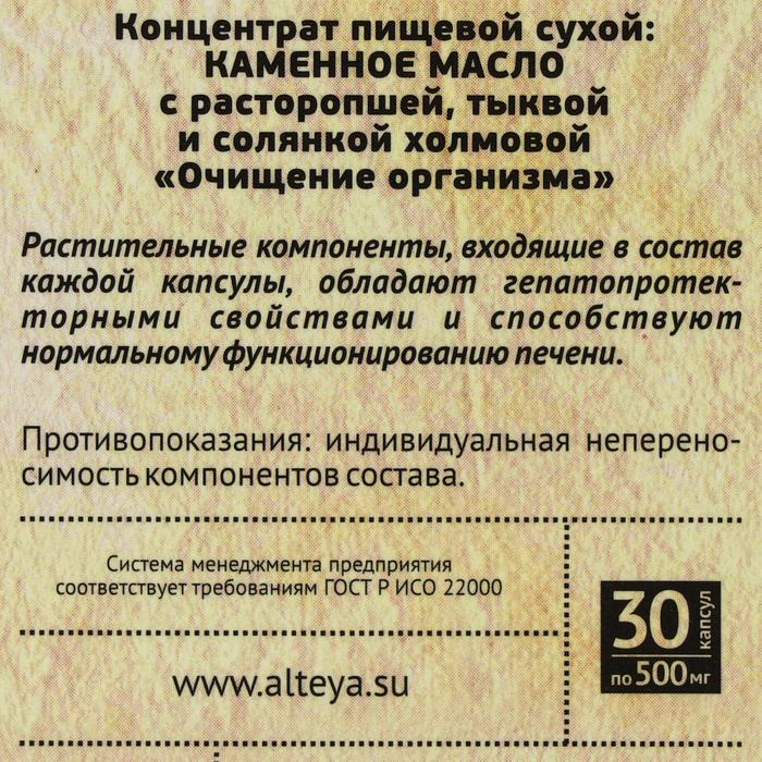 Каменное масло «Очищение организма» с расторопшей, тыквой и солянкой холмовой, 30 капсул по 500 мг