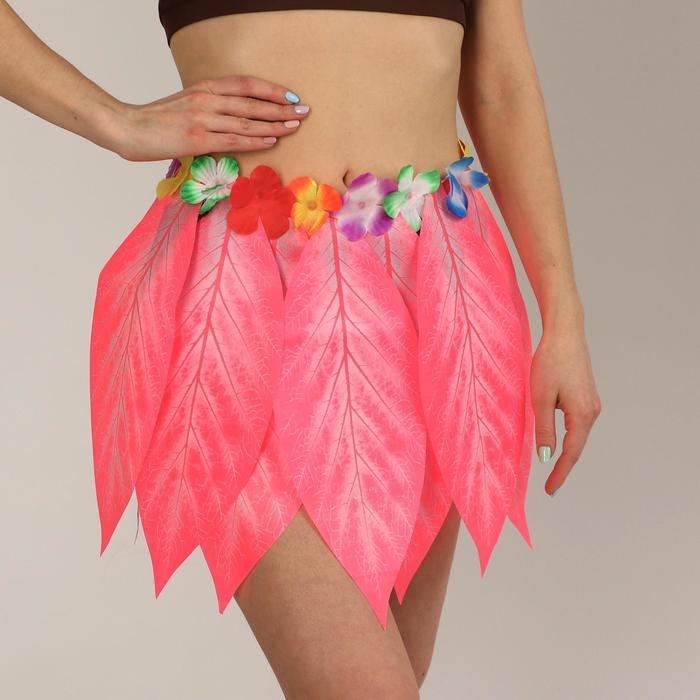 Гавайская юбка «Листики и цветочки» 36 см, цвет розовый