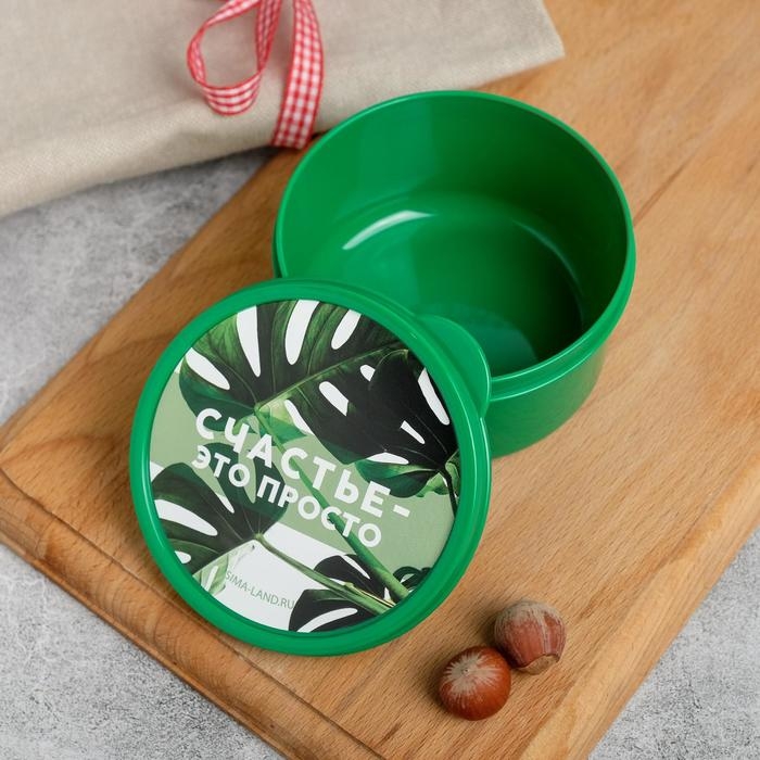 Ланч-бокс круглый FoodVibes «Счастье это просто», 300 мл
