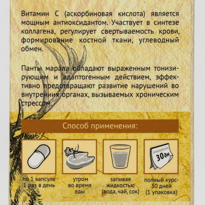 Пантогематоген «Тонус и жизненная сила» с пантами марала, 30 капсул по 500 мг